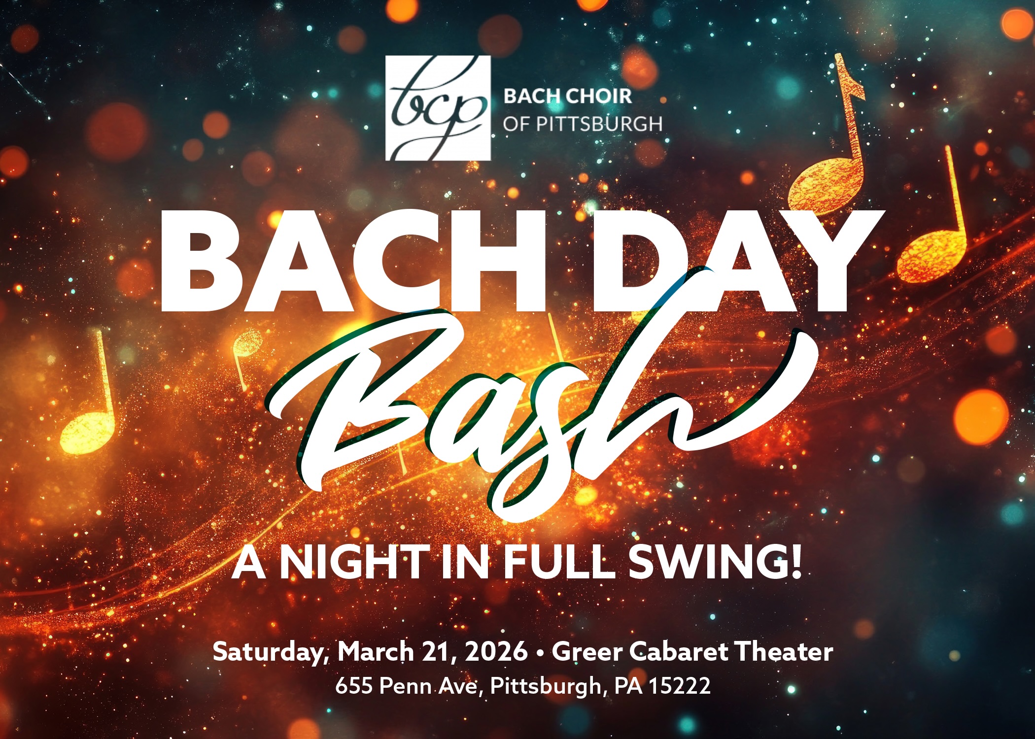 Come celebrate with the Bach Choir of Pittsburgh (BCP) at the Bach Day Bash, BCP’s signature fundraising event on Johann Sebastian Bach’s 341st birthday. This year’s Bash will be held at the Greer Cabaret Theater, Downtown Pittsburgh.